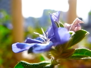 ベランダに咲くアメリカンブルーで。可憐な花です。