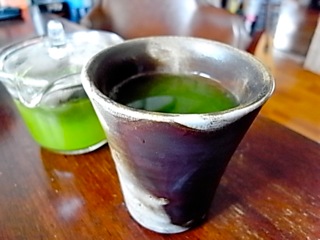 静岡産の八十八夜茶を備前焼の器で。う~ん、じゃぽ~ん。