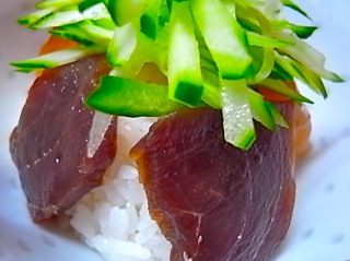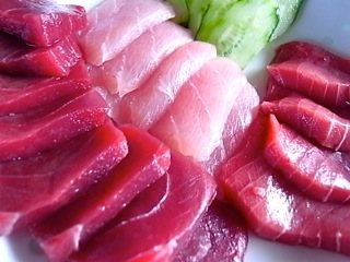 そして本マグロ中トロ、赤味、カジキマグロの3点盛り。