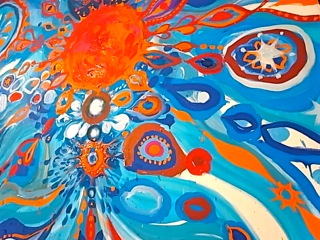 時に激しく、時に艶やかに絵を描きあげてく神田サオリ。