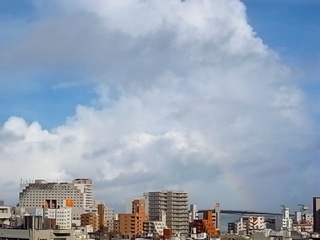 こちらは、泊大橋の上にうっすらと現れた虹。