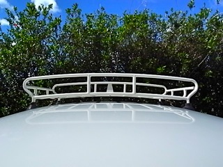 ミニクーパのホワイトルーフとハイビスカスの垣根と青い空。