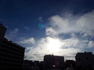中高層雲と低層雲と青空のコントラストが美しい西の空。