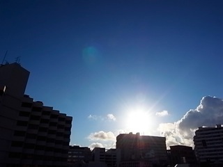 東の空、ビルの谷間からのご来光! 本日お天気も絶好調!!