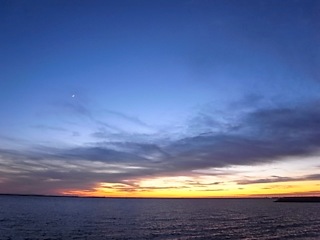 海にお陽様が沈んだあとの空の色の変化。ゆったりと時が流れます。