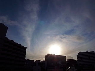 今日の沖縄の空。今朝も夜明け雨ににわか雨。