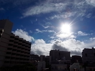 午前7時ごろ雲が流れ太陽が燦々と照りつける南国の朝。