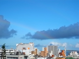 そのあと、沖縄テレビから泊大橋に一瞬虹のアーチが架かりました。