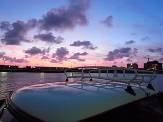 ミニクーパのホワイトルーフ越しの夕焼け。癒されます。