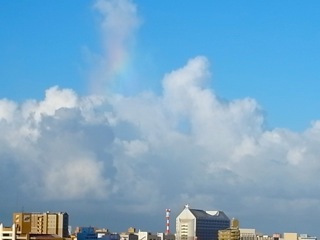南西の空に一瞬だけ小さな虹が出ていました。ラッキーな朝。