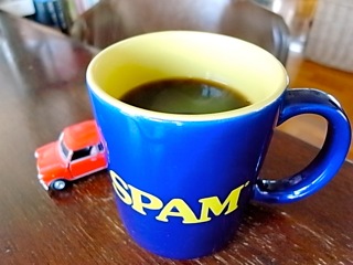「SPAM」のマグカップ with Mini Cooperで。