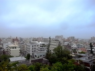 気温:27℃ 湿度:94% 風向:南南東17m/s(8月6日12時 那覇)