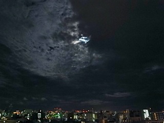 十四夜の月。雲の隙間からお月様のチラリズム。