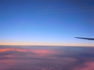 夕陽に染まる中高層雲。その上に広がる宇宙。