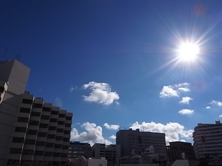 東の空には、太陽が燦々と。とても美しい南国沖縄の空。