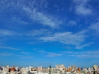 朝夕と涼しい風が吹いてます。そして上空には秋の雲。