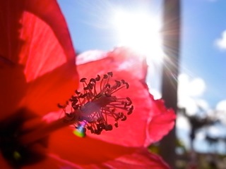 南国の太陽に透けるハイビスカスの花びらをセレクト。