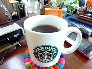 スターバックス・コーヒーのマグカップで、イン・オフィス。