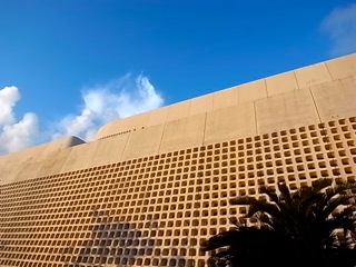 夕陽に染まる県立博物館美術館。