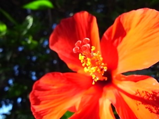 夕陽に染まるハイビスカスの紅。情熱的です。