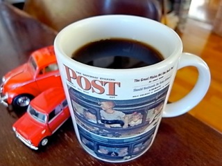 ノーマン・ロックウェルのマグカップ with Mini Cooper & VolkswagenType1で。