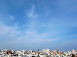 シルクのような薄い雲のベールに包まれた沖縄の空。