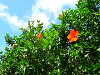 通り沿いにはホウオウボクの木が植えられ、歩道脇の小池には鯉が泳いでます。
