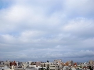 今日の沖縄の空、雲が広がって優しい色彩です。