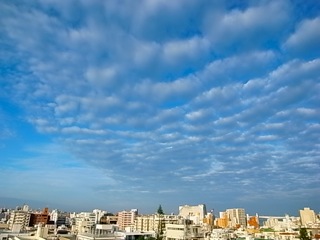 写真は午前7時過ぎの空。押し寄せる波の様な空の模様がステキングです。