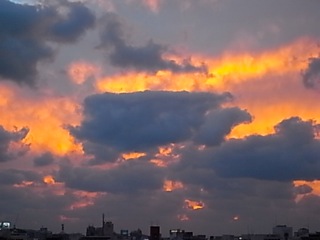 雲の合間から燃ゆる空。コアは熱く燃えています。