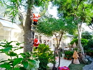 昨日お邪魔したカフェのガーデンもかわいいサンタがお出迎え。
