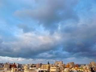 雲の合間から一瞬だけ太陽が顔をのぞかせ那覇の街をオレンジ色に染めました。