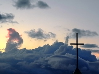 クロスの後ろの方、大海原を翔るイルカのように見えました。