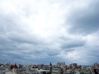 ブルーグレイの雲の塊が南国の沖縄冬の朝を彩ります。