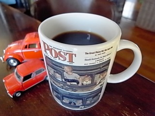 ノーマン・ロックウェルのマグカップ with Mini Cooper & VolkswagenType1で。