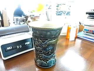 龍のやちむんの器 with 今年の干支龍のぬいぐるみで
