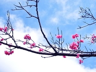 南国沖縄の青と白と桜の色のコントラスト。那覇はそろそろ見納めかな。
