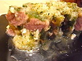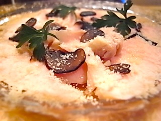 写真は、「黒鶏トサカと豚ホホ肉のテリーヌ」。