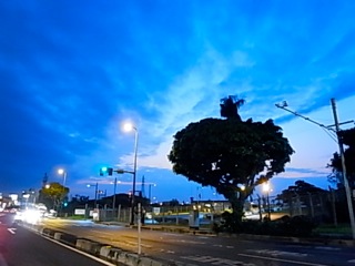 写真はその帰りに撮影した黄昏時。雨の58号線。