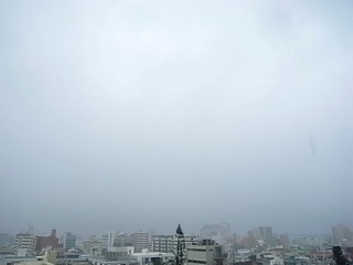 今日の沖縄の空、雨に煙る那覇の街角。