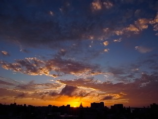 ふと目線を窓の外にやるとドラマティックなサンセットショウ。