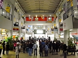 夕方の突然のスコールでアーケード街に急造のライブスポット。