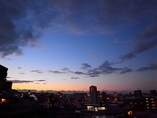 太陽と雲が生み出すオレンジ&ブルーのグラデーション。