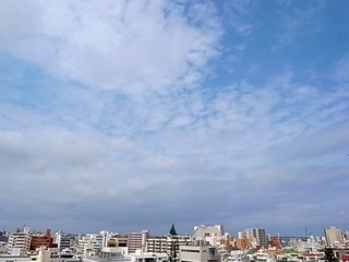 今日の沖縄の空。やわらかい陽射しが降り注ぐ、南国沖縄土曜日の朝です。