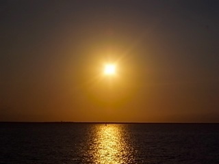 黄金色に輝く太陽と空と海。輝かしい未来に向かって。