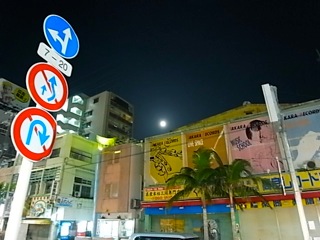 5月5日深夜。国際通りをパトロール中に撮影したスーパームーン。