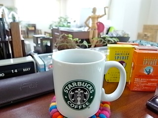 スターバックス・コーヒーのマグカップwith Mini Cooper in Officeで。