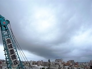今日の沖縄の空、南国沖縄梅雨の空。厚く雨を蓄えた雲が低く垂れ込めています。