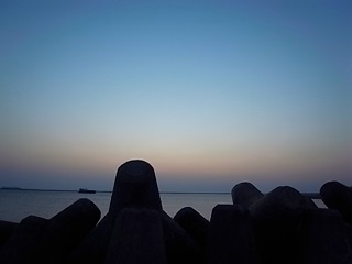 陽が水辺線に隠れ、夜がやってくる前のこの時間帯もお気に入りのひととき。