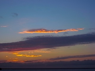 水平線に夕陽が沈んだあと、上空の雲を染め上げていきます。